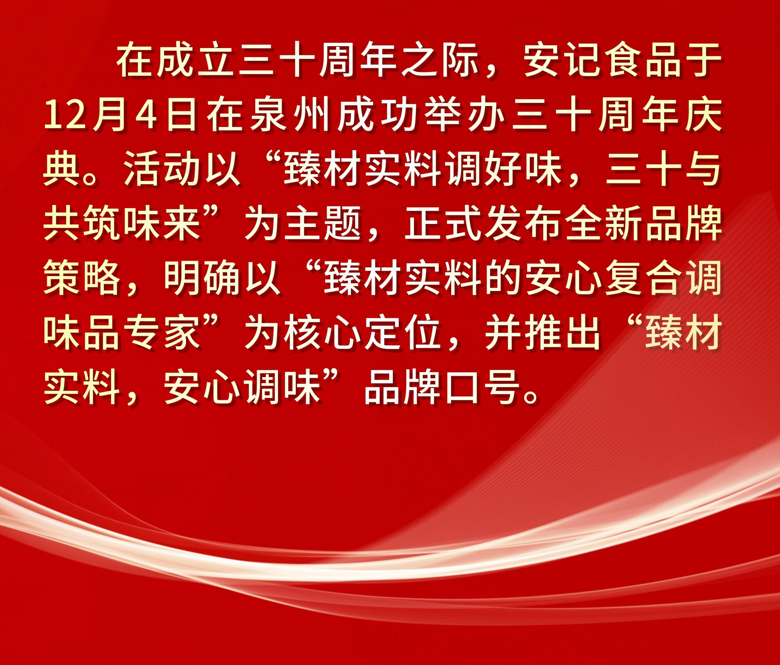 | “臻材實(shí)料調(diào)好味,三十與共筑味來(lái)”| 安記食品成立30周年暨上市十周年慶典圓滿(mǎn)成功 |